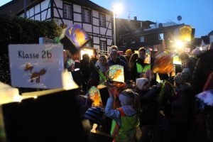 Die Kinder hatten wieder wunderschöne Laternen gebastelt, mit denen Sie zum Schützenplatz zogen, wo das beeindruckende Martinsfeuer brannte. Viele Bewohner hatten ihre Häuser am Zugweg geschmückt. St. Martin verlas die Gewinner der Gänse. Gemeinsam sang man Martinslieder und ging zurück zum Jugendheim. Jedes Kind bekam hier seinen Weckmann, die Gewinner konnten hier Ihre Preise in Empfang nehmen. Wegen der Umbauarbeiten in der Schule ist der Schulhof bis auf weiteres gesperrt.
