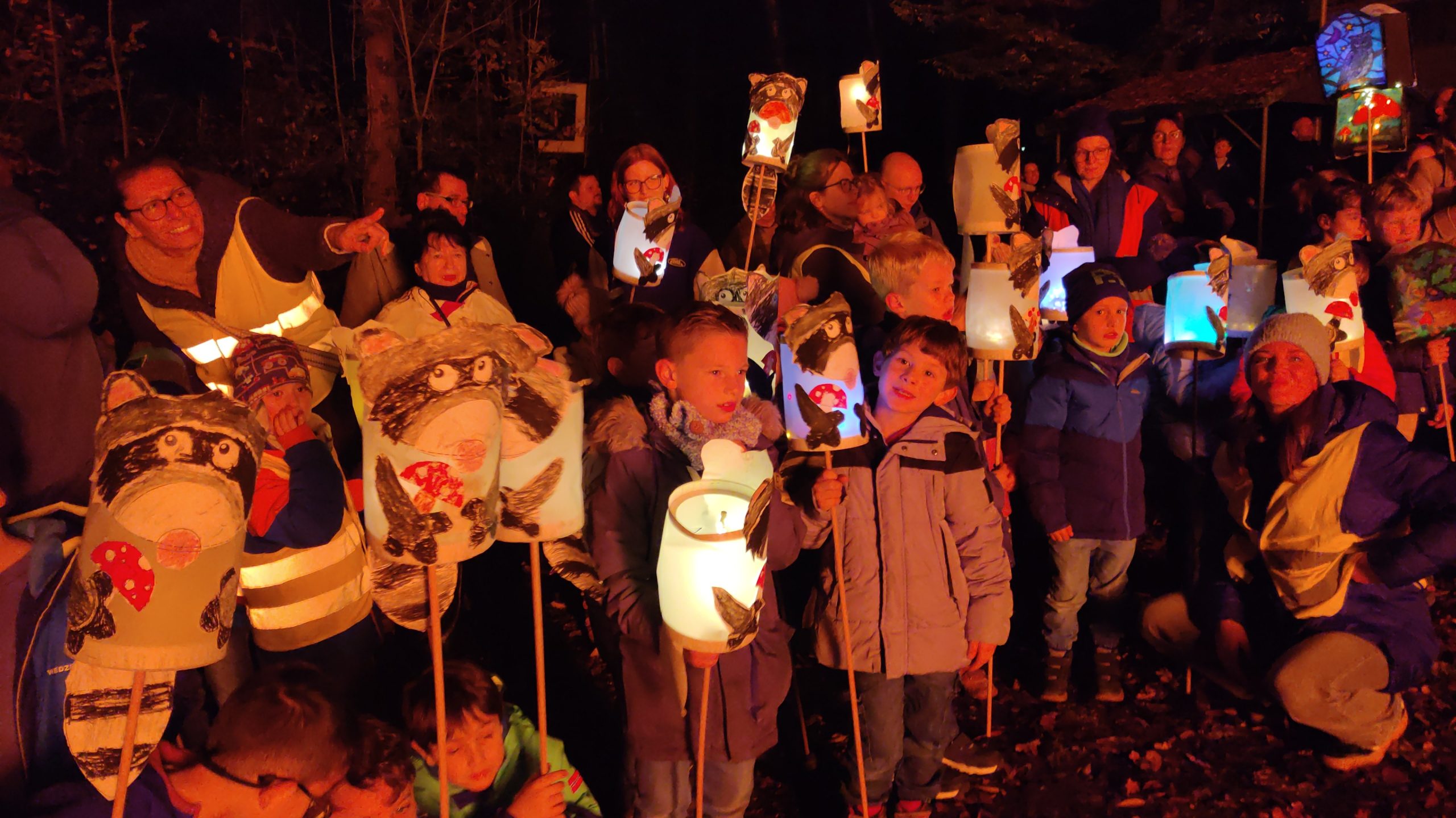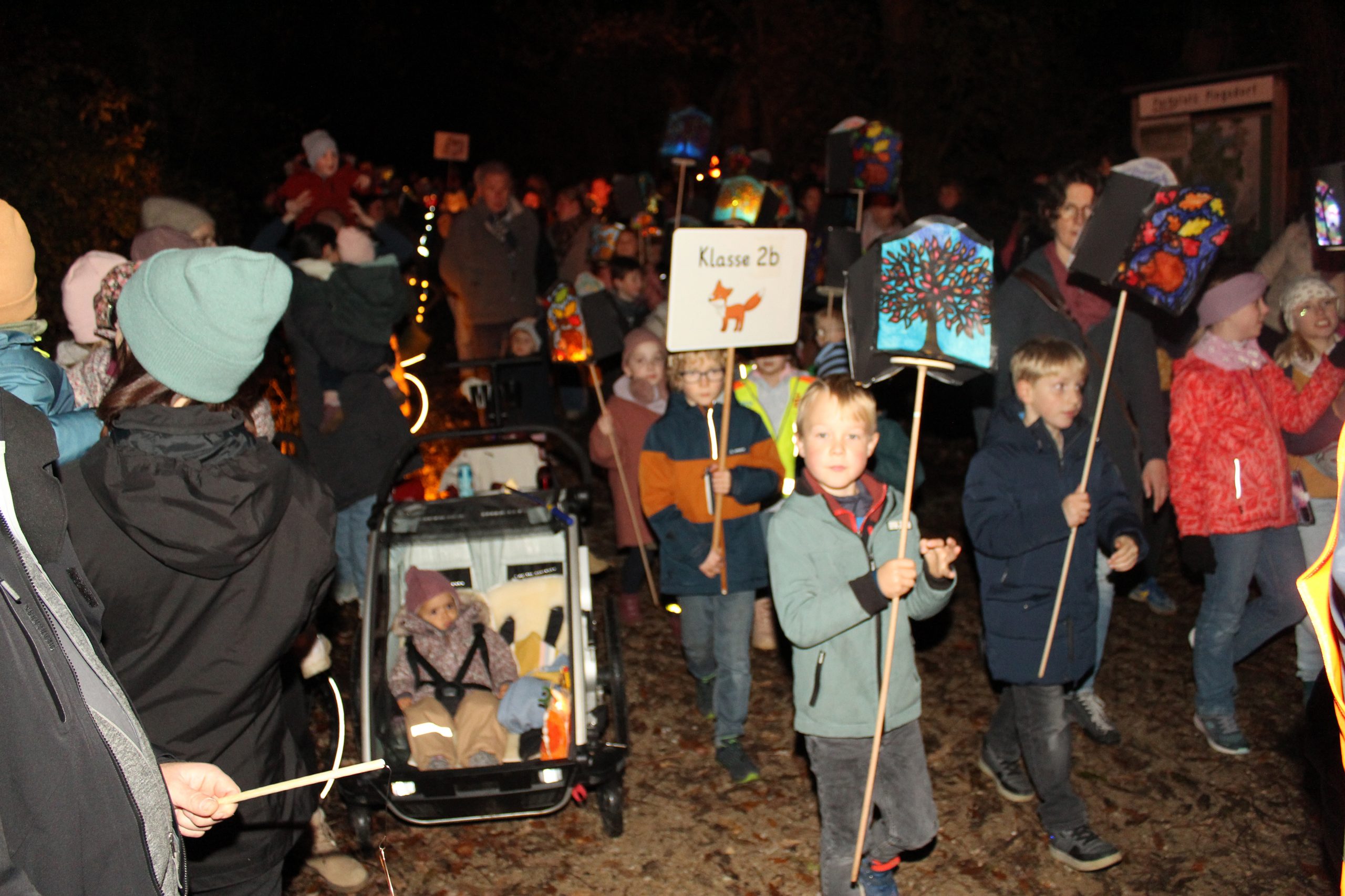 Schon am Tag vorher war St. Martin mit dem Orga-Team der Dorfgemeinschaft in Schule und Kindergarten gewesen.