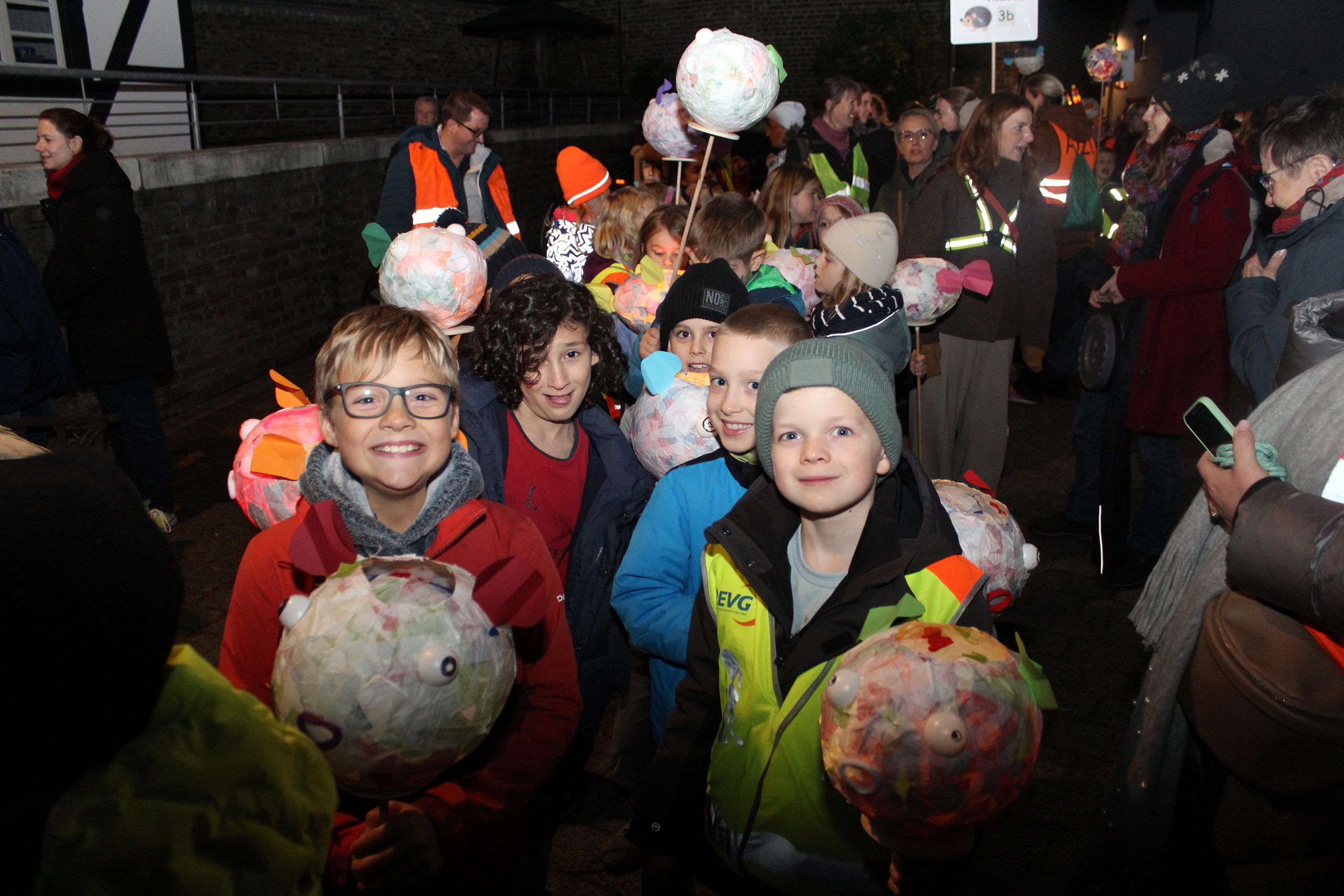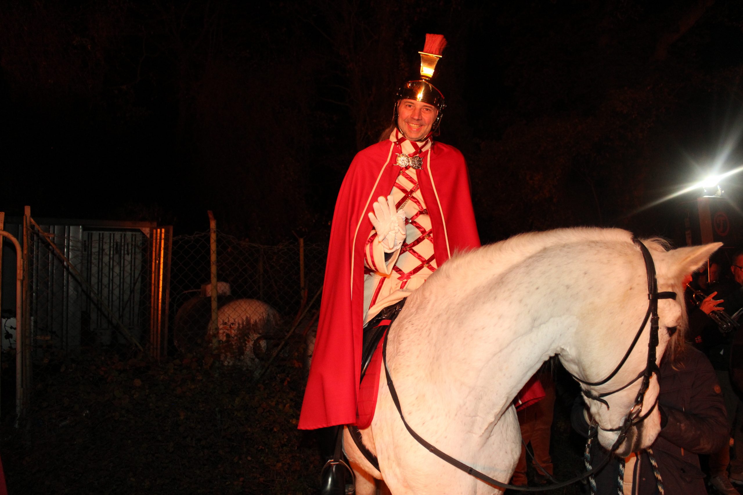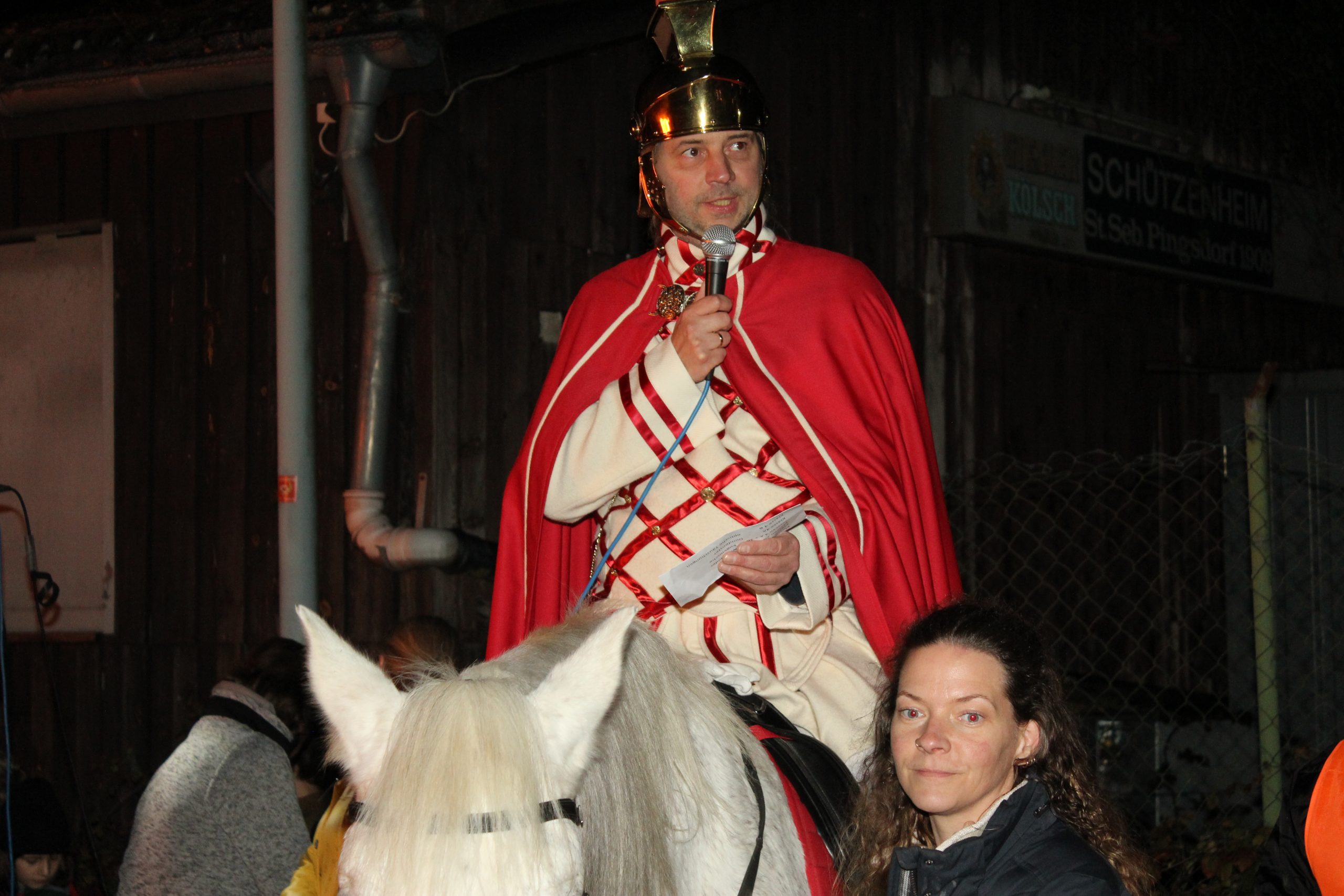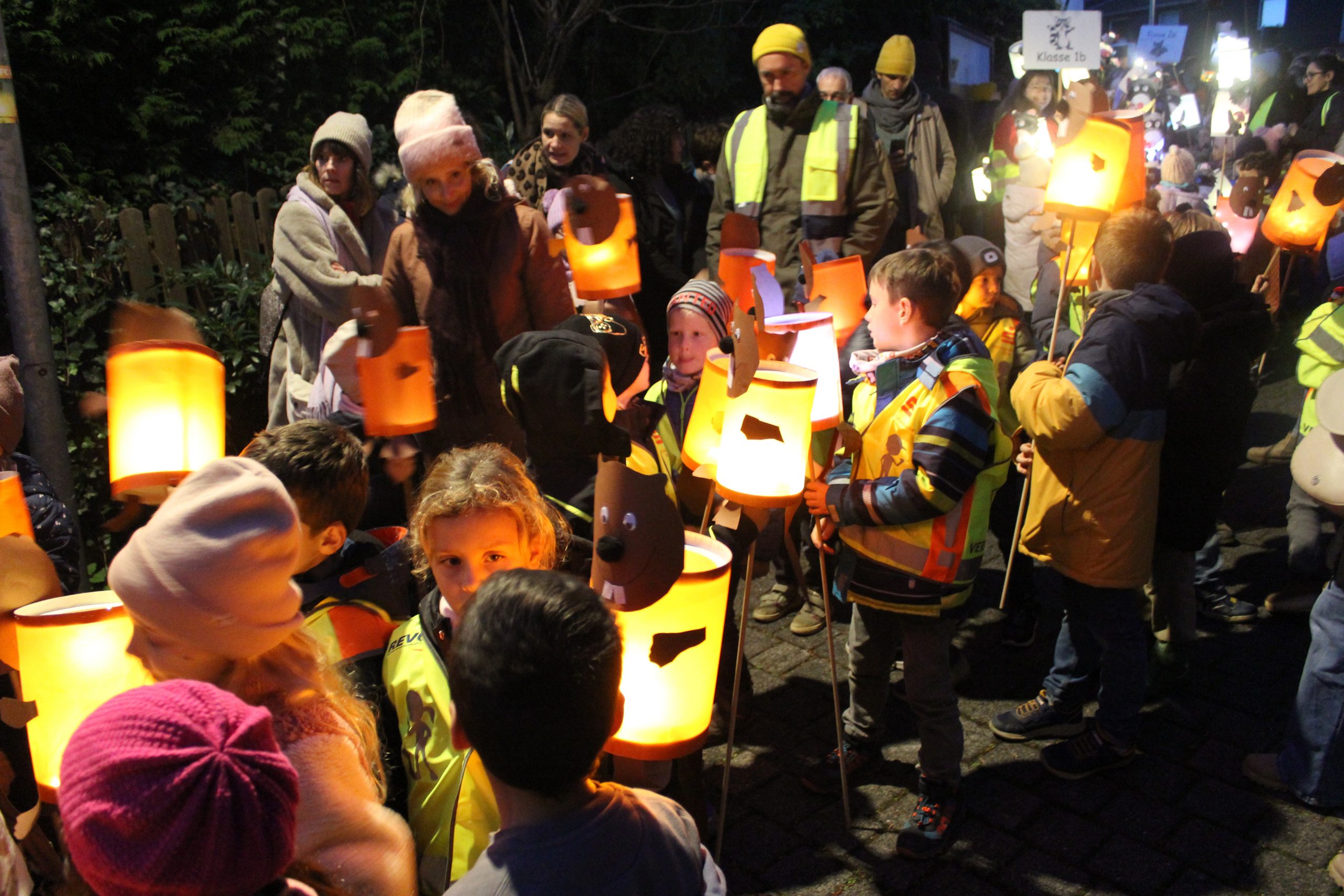 … leuchten die Laternen wieder“.  So sangen die Kinder der Grundschule und des Kindergartens beim diesjährigen St.-Martins-Zug. Dieser ging auch in diesem Jahr über Badorfer Straße, Obermühle und Hüllenweg bis zum Schützenplatz, musikalisch unterstützt durch Musikkapellen. Um 17:30 ging es an der Kirche los, angeführt wurde der Zug von unserem neuen St. Martin, Manfred Giefer auf einem weißen Pferd.