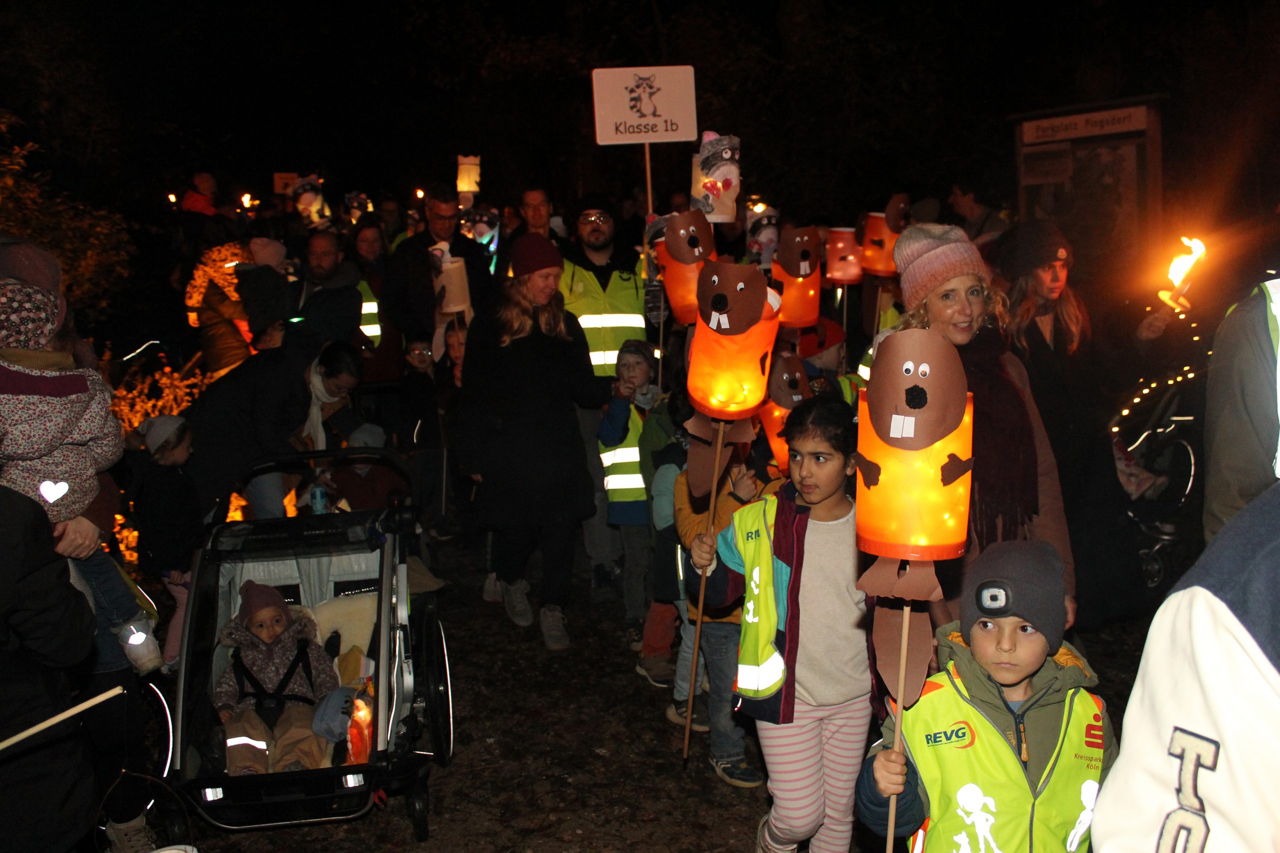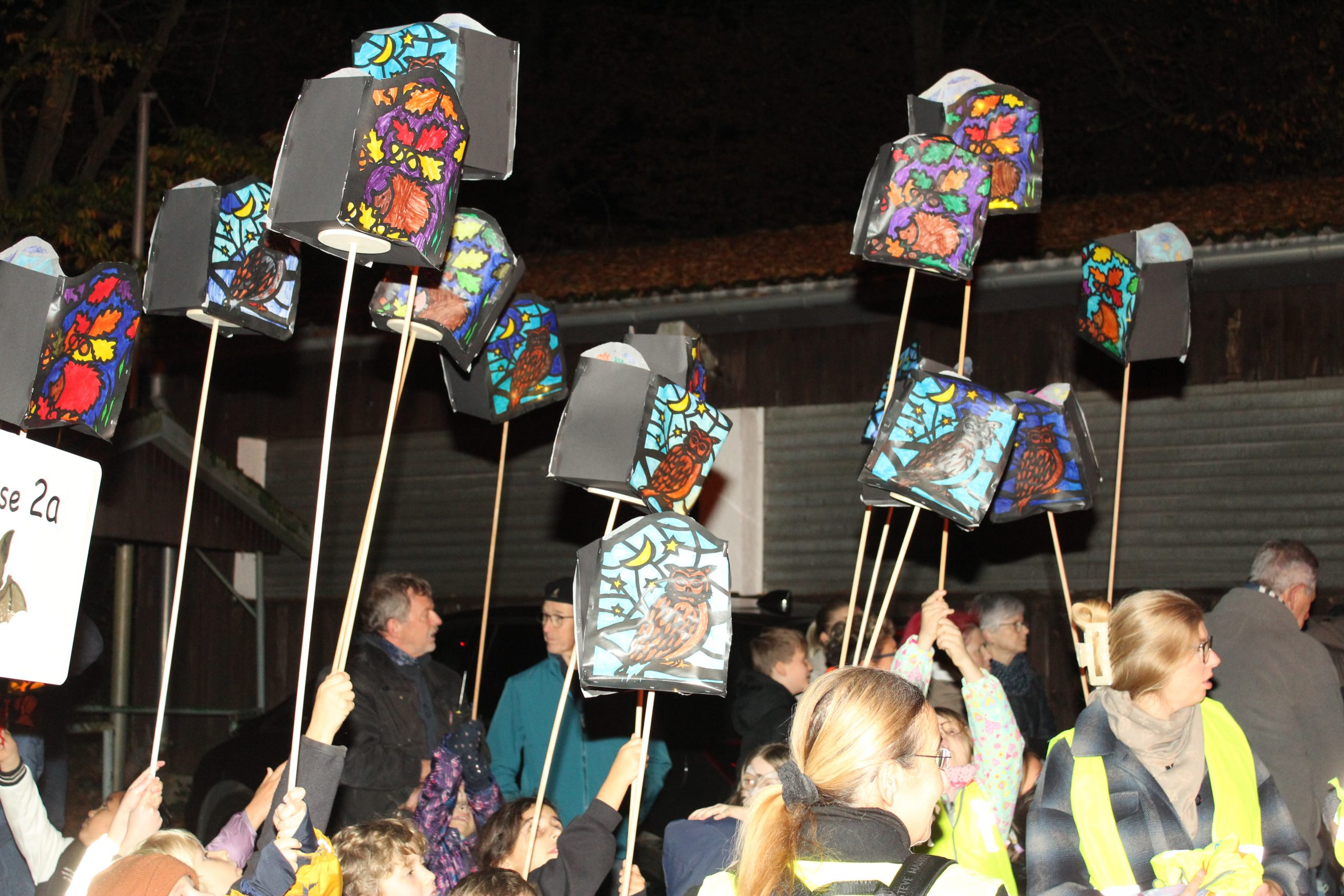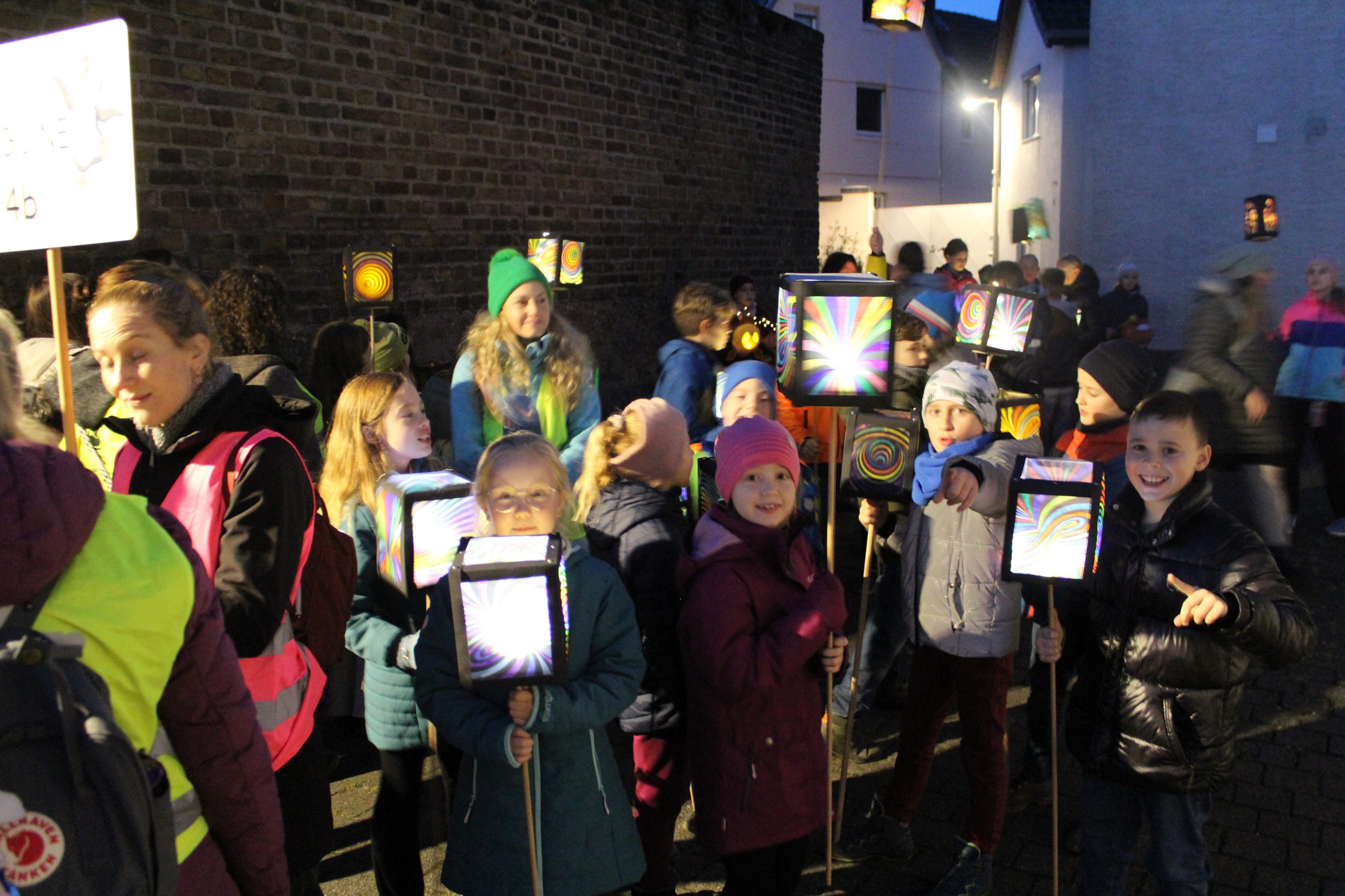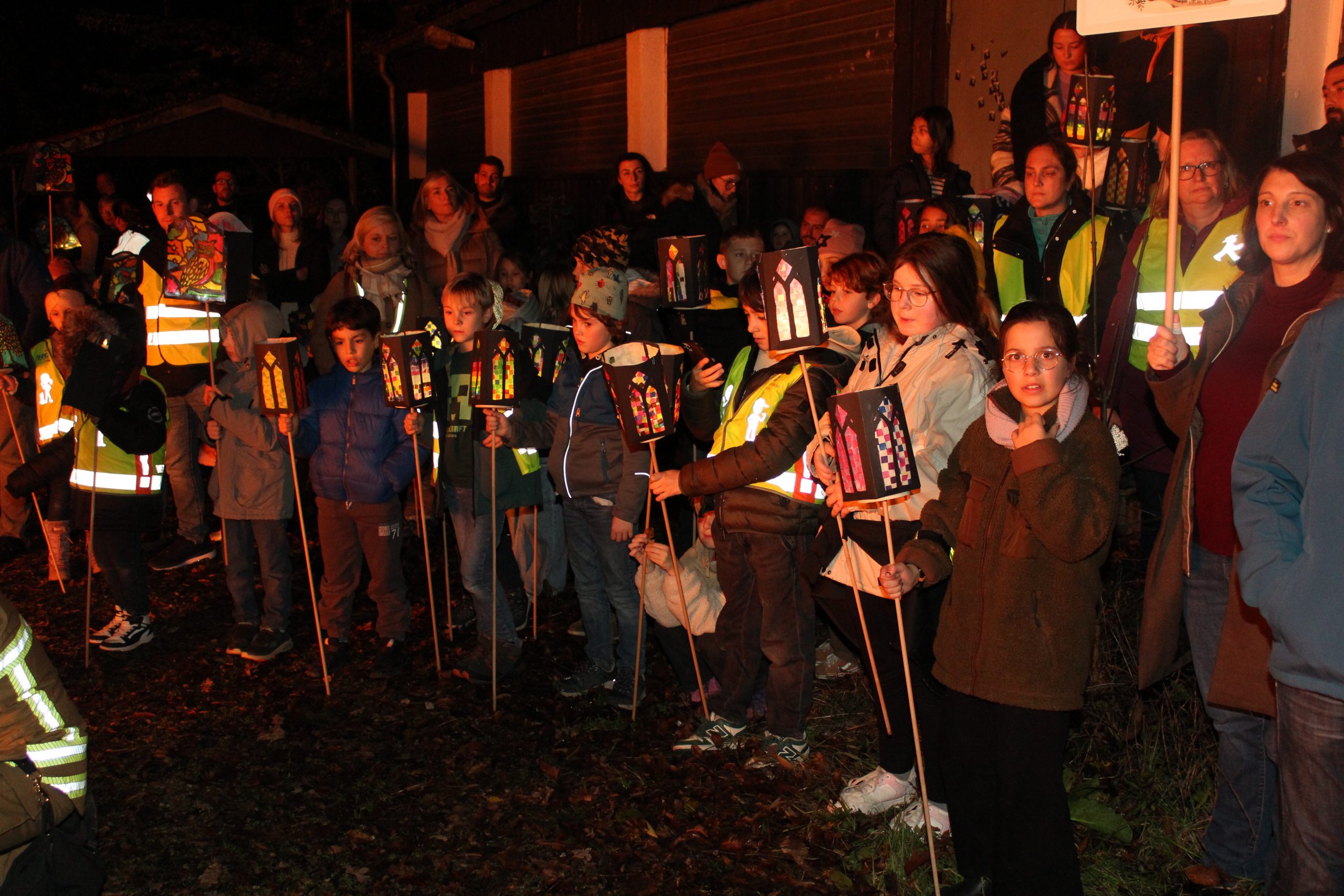 … leuchten die Laternen wieder“.  So sangen die Kinder der Grundschule und des Kindergartens beim diesjährigen St.-Martins-Zug. Dieser ging auch in diesem Jahr über Badorfer Straße, Obermühle und Hüllenweg bis zum Schützenplatz, musikalisch unterstützt durch Musikkapellen. Um 17:30 ging es an der Kirche los, angeführt wurde der Zug von unserem neuen St. Martin, Manfred Giefer auf einem weißen Pferd.