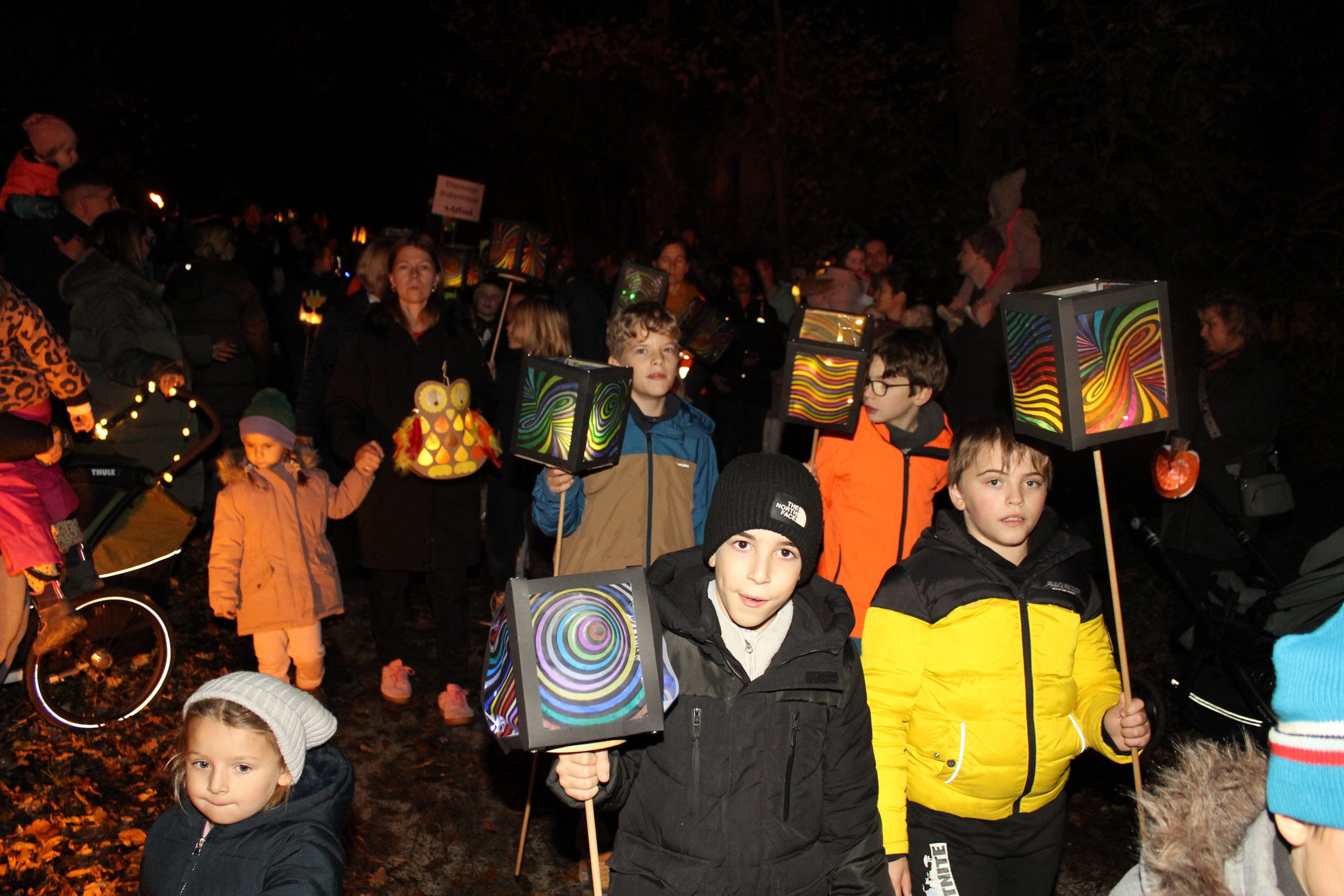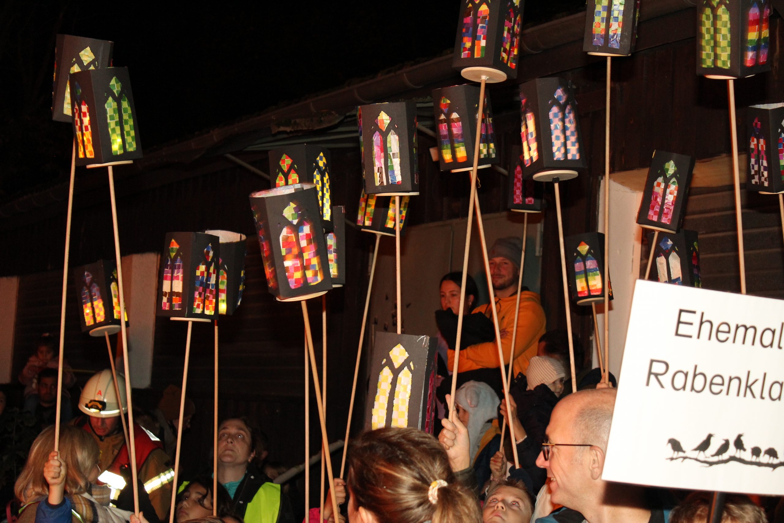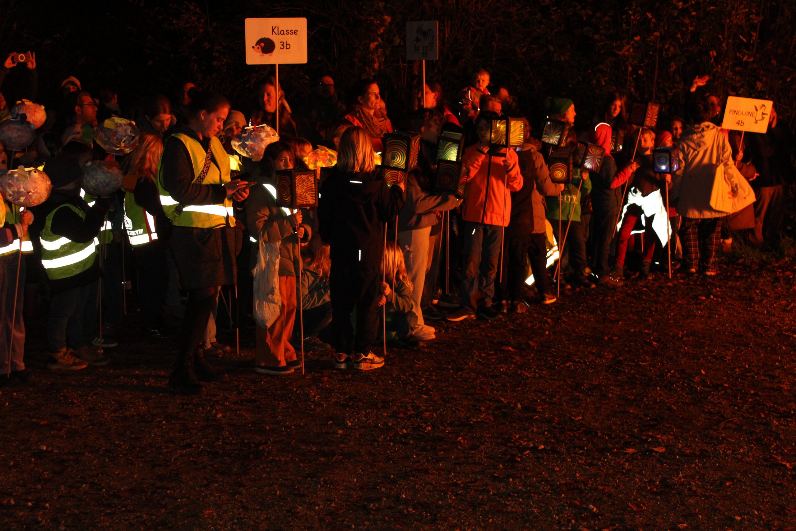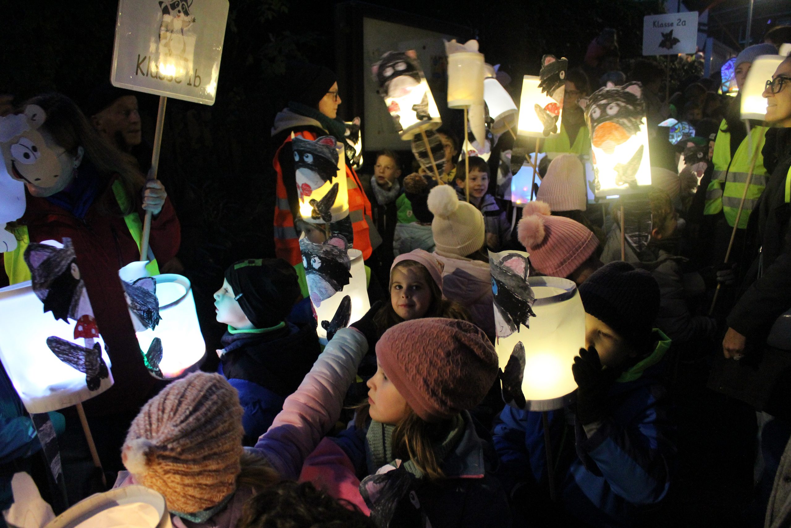 … leuchten die Laternen wieder“.  So sangen die Kinder der Grundschule und des Kindergartens beim diesjährigen St.-Martins-Zug. Dieser ging auch in diesem Jahr über Badorfer Straße, Obermühle und Hüllenweg bis zum Schützenplatz, musikalisch unterstützt durch Musikkapellen. Um 17:30 ging es an der Kirche los, angeführt wurde der Zug von unserem neuen St. Martin, Manfred Giefer auf einem weißen Pferd.